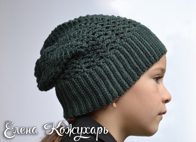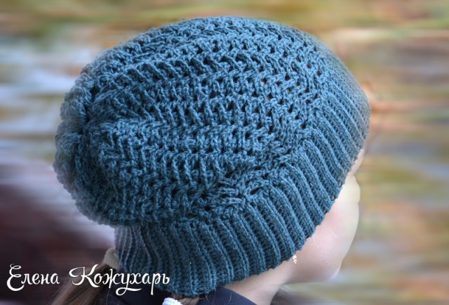 Связалась легкая осенняя шапочка. Вязала из двух клубочков. Резинка - крючком из столбиков без накида за заднюю полупетлю. Пряжа безымянная, крючок - 3.