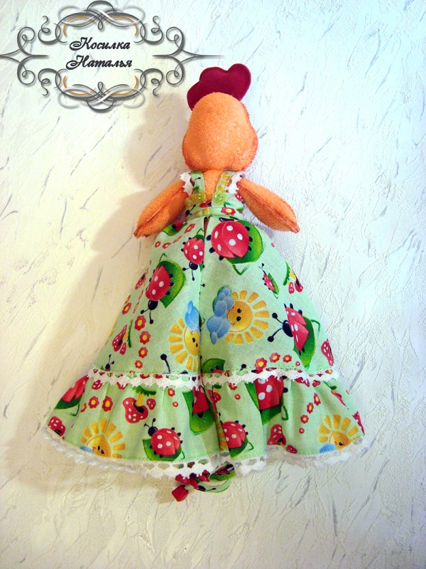 Верх курочки сделан из фоамирана, сарафанчик и мешочек для хранения пакетов сшит из хлопка. Одежда снимается.