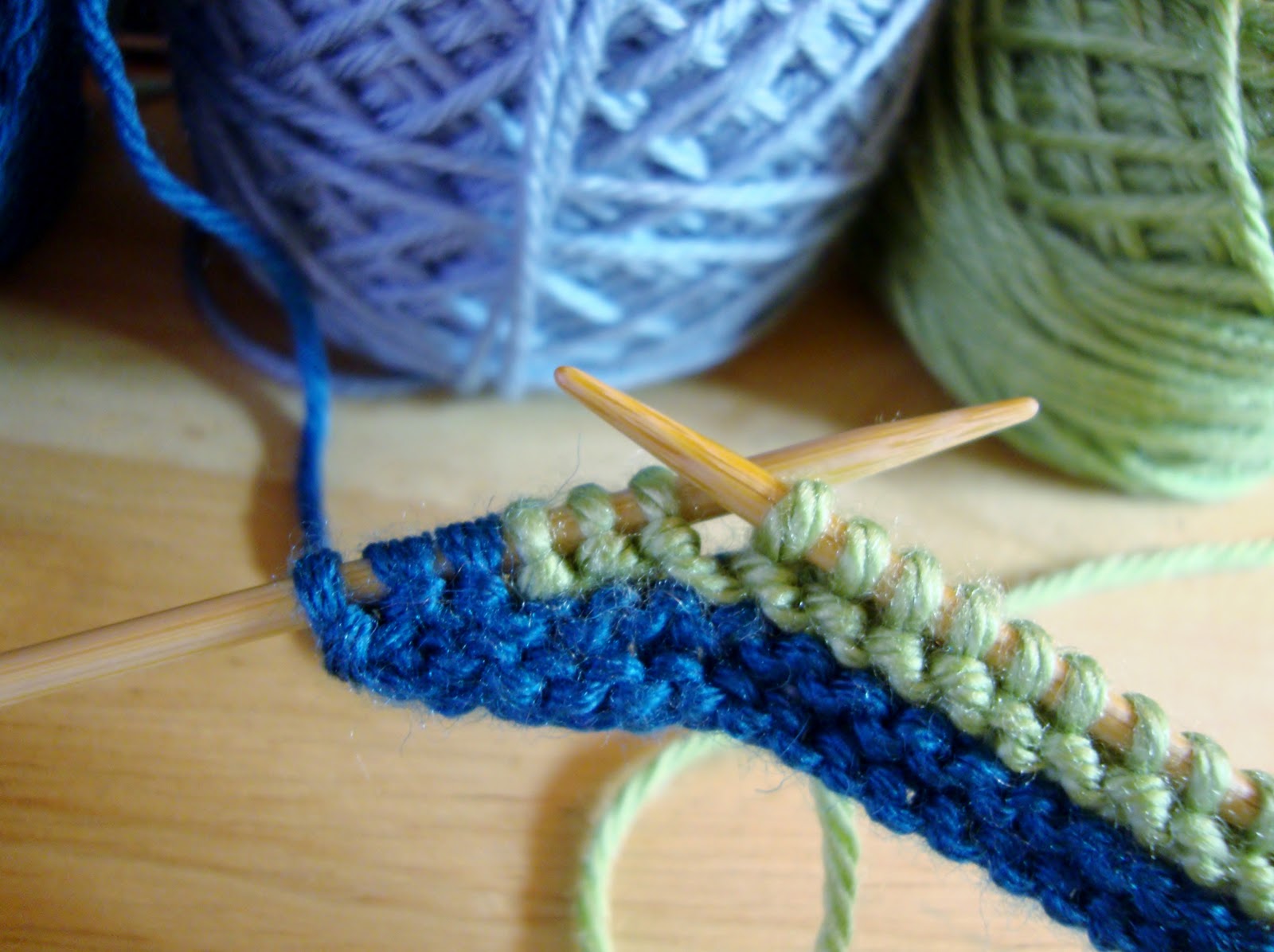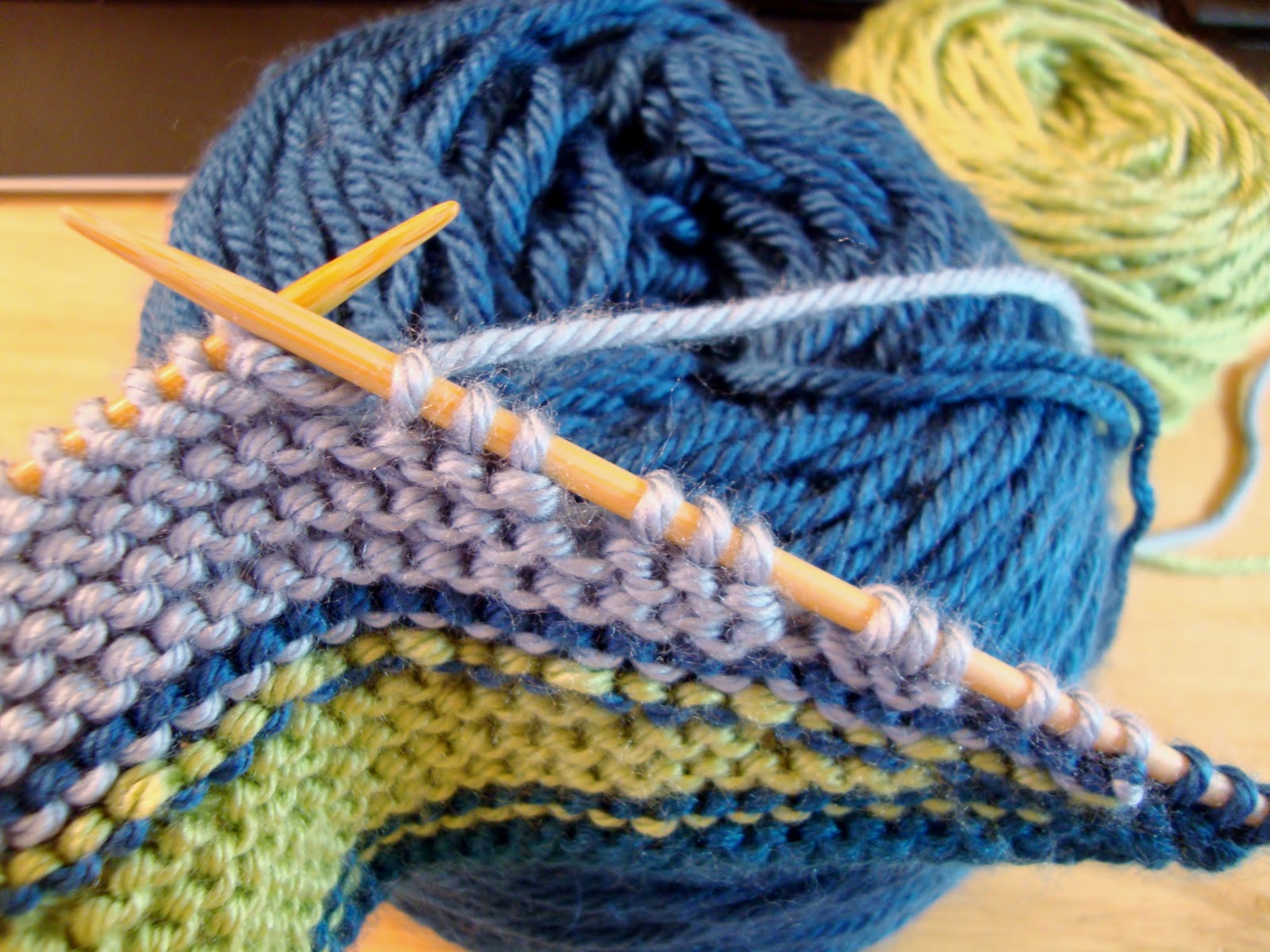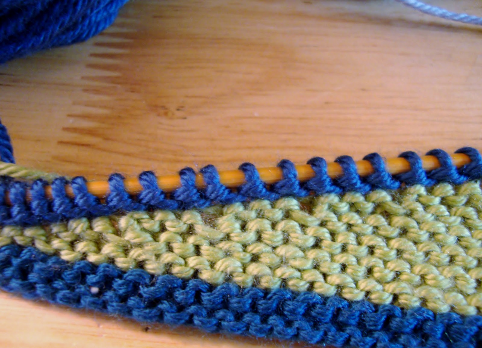изменение цвета и вяжем два ряда через все швы