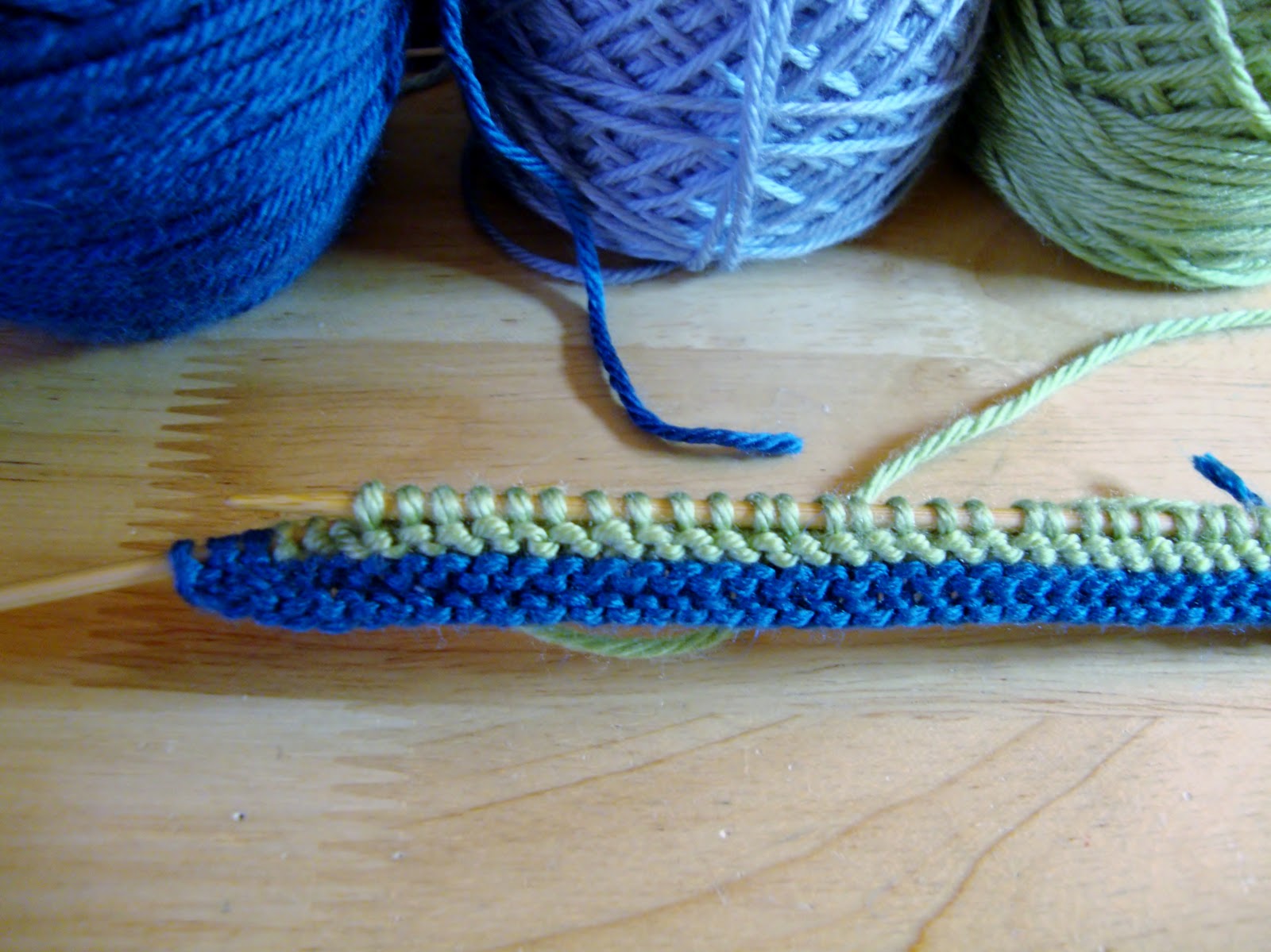 разрежьте пряжу и вступить на новый цвет