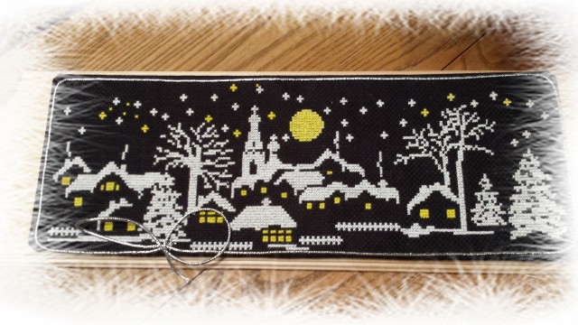 Вышивала на 14 каунте черной канвы. Не очень люблю 14 каунт, но другой черного цвета здесь нет, да и эту привезла в прошлом году из Ванкувера.