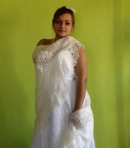 Это она предложила совместник по сказочной просто красоте шали. Это она терпеливо отвечала на самые дурацкие вопросы. Это она ввела вашу покорную слугу в сказочный и уютный мир спицевых шалей из мохера. Она подсказала идею создания целой коллекции свадебных шалей. Началось все именно с Ландышей. Схема одна, материалы разные и подход тоже разный. Все чуток друг от друга отличаются. Что получилось- судить вам. А свой букет свадебных Ландышей я посвящаю Илоне. Спасибо, дорогая, что ты есть на свете!!! Ваша Ангелуша