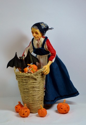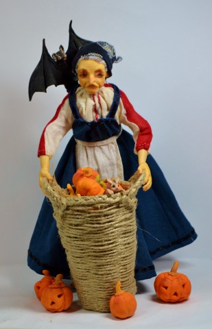 Ягишна (запекаемый пластик, 26,5 см, корзина - сизаль, летучая мышь - кожа).