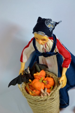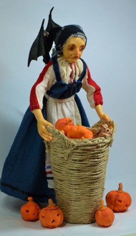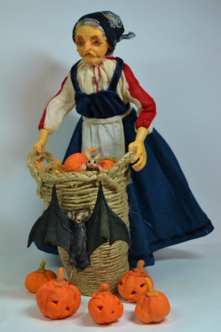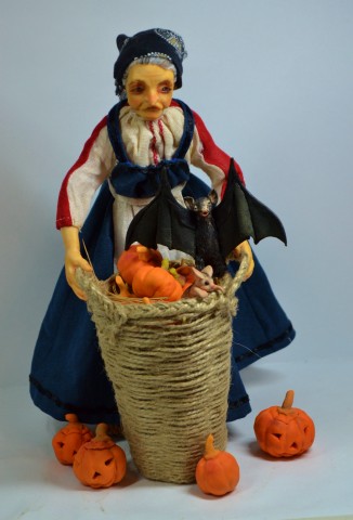 Хорошая кукла получилась! И имечко подходящее — не злая Баба-Яга, а Ягишна.В старые добрые времена так соседок звали — по отчеству или по прозвищу (Куделиха, Масальчиха).Из Ягишны хорошая хозяйка и знатная огородница получилась, вон какой урожай она собрала! И летучая мышь мне очень понравилась! Татьяна, творческих успехов!!!