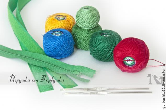 1. Нитки хлопковые Ирис 5-6 цветов на Ваше усмотрение (я выбирала основные цвета для изучения –красный, желтый, синий, зеленый)