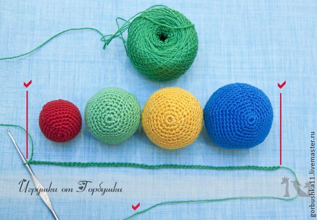 Предлагаю связать вместе простую и очень полезную игрушку для наших малышей, которая будет развивать мелкую моторику, тактильные ощущения, звуковое и цветовое восприятие и умение манипулировать предметами.