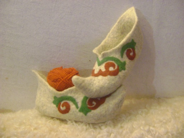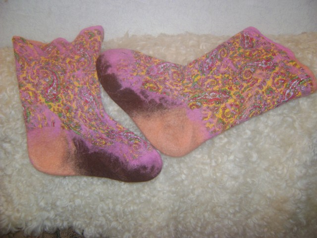 Вот снова я, зимой у нас холодно, поэтому всем хочется уютных тапочек и носочков. Такие тапотульки попросила дочка, я хотела надвязать резинку изнутри, даже нитки подобрала, но она против, так что пока оставлю так. Ну и для себя любимой из остатков шерсти носочки, с красивым ситцем. Вот так поработала.