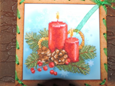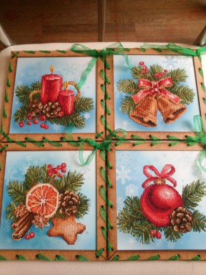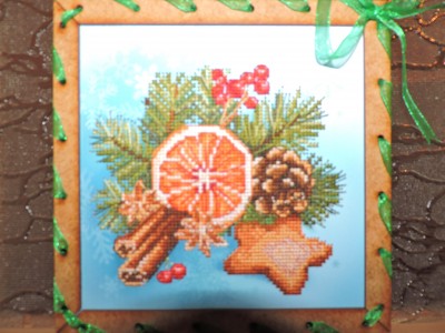 Вышивать было и легко и не очень. Пробка на удивление вела себя очень достойно, вот только не было на ней расчерчена сетка и нельзя было этого сделать, т.к. готовую работу нельзя стирать. А цвета ниток и пробки в одной цветовой гамме, ну и несколько это затрудняло. Хотя если высказать общее мнение о работе я бы скорее сказала <<Вышивать легко и очень приятно!!!>>. Но побаивалась вначале. И вот опять та же история, что и с иконой. - из 6 цветов 1 цвет закончился на половине работы. Причем был он основной. А остальных думаю хватит еще на одну работу. Ну что сделала? Взяла из другого набора этой серии, благо цвета одни и те же, но хватит ли в другой теперь вопрос...И опять же - истратила половину этого цвета из другого набора.