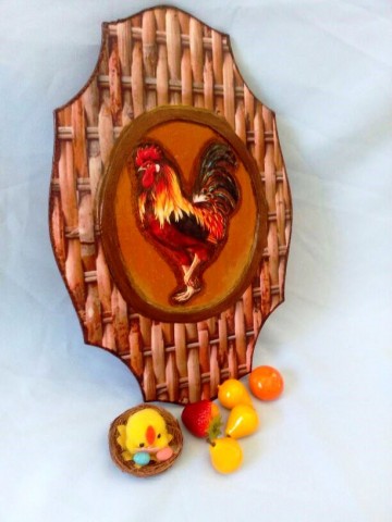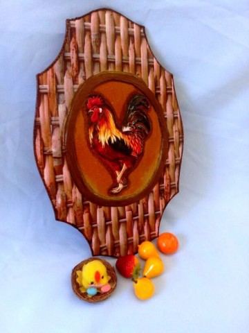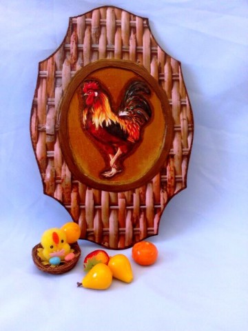 Здравствуйте, дорогие рукодельницы. Вот, в перерывах между изготовлением поделок на конкурс *Три на три*, сотворила панно. Буду рада критике и подсказкам. заготовка фанерная,размером 20х30, загрунтовала, лазерная истонченная распечатка фона и петушка, первого петушка сделала объёмным при помощи моделирующего геля, второе панно сделала по МК Юлии Валько.