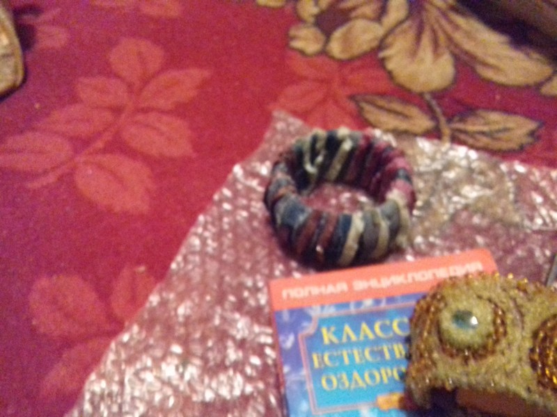 И так теперь о посылке ( вот уже час наверное сижу в телефоне и пытаюсь набрать отчёт ): чего только среди подарков не было - и целый ворох салфеток для декупажа и чудесная птичка и карандаши, книжка, даже без конфеток никуда, а самое главное это шикарный, но очень увесистый браслет и ещё один из джинсы и замечательная пара сережек. Все просто супер!!!!!!