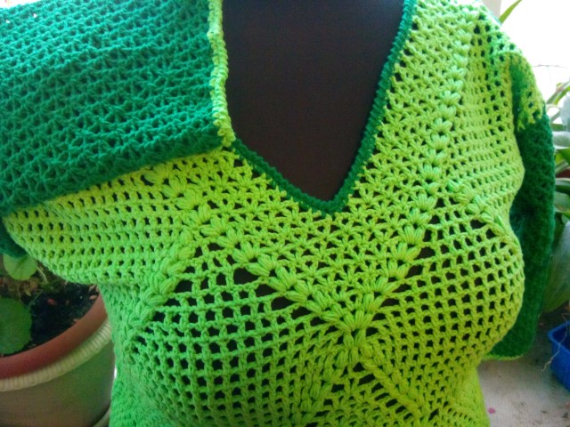 Очень красивый полувер получился! И цвет приятный, и рисунок интересный.
