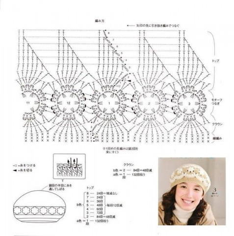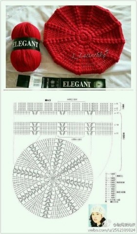 Береты крючком и схемы к ним
