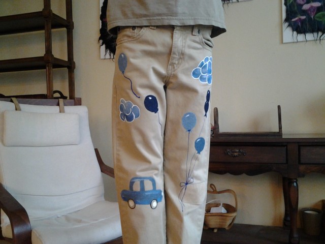 Сейчас представляю вам иной способ починки дырочек. Мне в руки попали краски по ткани Scribbles pop, 3D paint. в краткой инструкции сказано : нанести на ткань и оставить до полного высыхания на 72 часа. Всё. Ч то и собственно и сделала. Использовала самоклеющуюся джинсу трёх оттенков , политру, кисть и краски. Все края джинсы прошила в ручную, для прочности. Постараюся эту красотень не стирать в машинке. Посмотрим, на долго ли хватит.