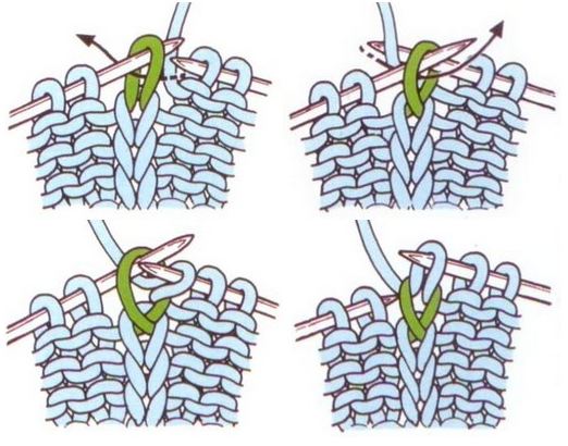 Кромочная, 1 лицевая, накид, скрещенная лицевая, накид, 1 лицевая.