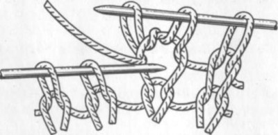 *3 изнаночные, две петли из накида предыдущего ряда, 3 изнаночные, две петли из накида предыдущего ряда* повторить 10 раз
