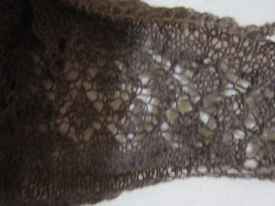 А как шаль из кид мохера по размерам? Шалька-то небольшая, у меня до блокировки по спинке было 45 см, после блокировки 60 см. Но я тяну ого-го как )) аж звенит ))