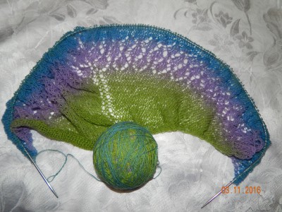 7 или 8 ноября будет третий этап, будем вязать кайму шали, закрывать петли и делать правильную блокировку.