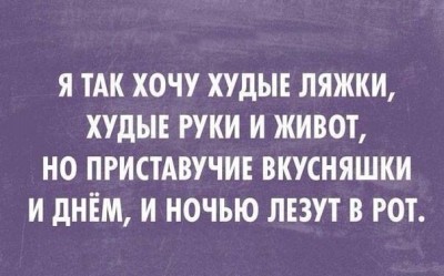 - Блин, а все-таки приятно, когда худеешь-худеешь, а тебе вдруг кто-то говорит: "Ты такая худая! Тебе поправиться нужно!"