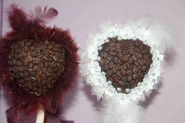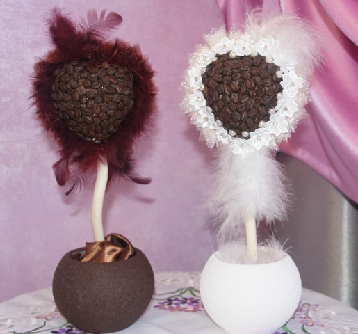 Недавно подруга вышла замуж. Захотелось сделать что-то своими руками. И чтобы радовало глаз...Получилась кофейная парочка.
