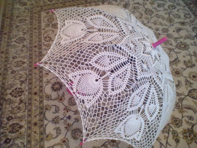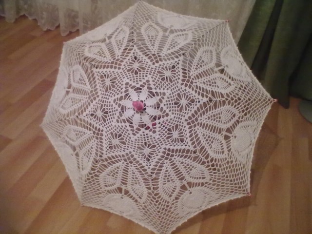 Сама я связала три зонта(два белых и один малиновый) сыну для фотосессий. Когда держу в руках уже готовый зонт, сама не верю. что это сделала я.