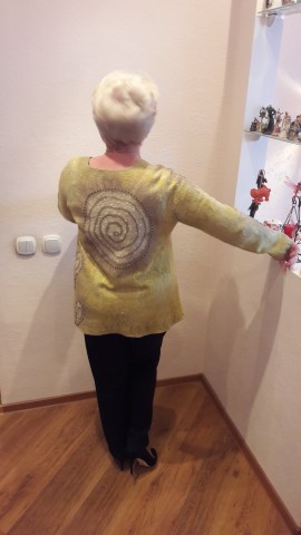 Светлана, очень удачная работа. Кроме того, что изумительно красиво, я представляю как уютно и тепло в такой замечательной вещи. Представляю, потому что зашла разместить свою первую валяную одёжку и увидела эту красоту. Теперь уж и не знаю выставлять ли. Да, отлично лежит пройма. На зависть прям. ЗДОРОВО!!!