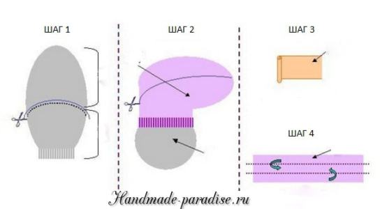 Я отрезала белые пальчики у носочков и сделала заготовки для туловища и головы, в соответствии с размерами.