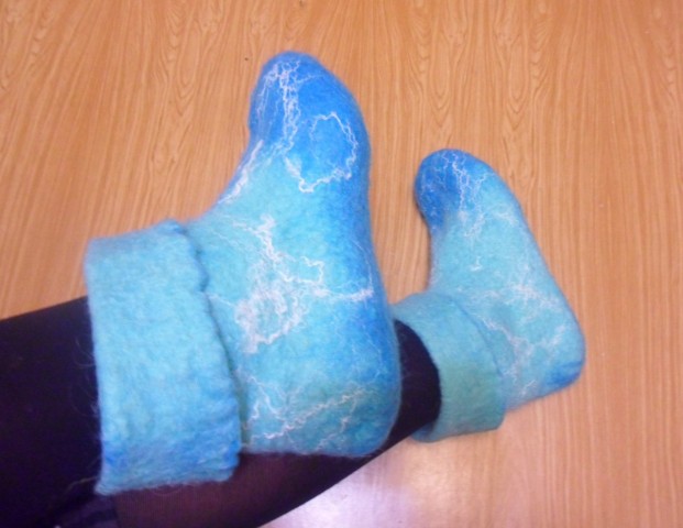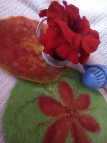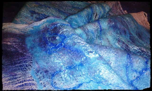 Что касается расок ПРибой. Есть МК по окрашиванию от Елены Смирновой. как раз этими красками. он в свободном доступе. Вот по нему и красила. Марлю скрутила, в почти кипящую воду насыпала краску-порошок. совсем немного, положила марлю. потом насыпала другой цвет. она стала двойного окрашивания. эти краски меж собой не взаимодействуют. ну и соли -может ложку столовую. для закрепления.ещё я шёлк покрасила этими красками. тоже классно получилось. но я его на юбку использовала, а её пока не доваляла. чуть позже выложу)Марля сваливается идеально. быстро. только тереть надо аккуратно. А лучше вообще в рулоне катать, до стабильности войлока, а то дырочки получаются.