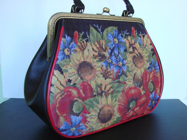 Внутри сумочки есть потайная змейка для доступа и удобства вышивки.