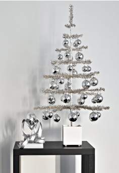 Мы на работе делали елочку из бамбуковой лесенки для поддержки цветов (верх чуток сдвигали, внизу наоборот раздвигали в стороны и украшали как елку, дома давно ставим корзинки с разными ветками: кедра, хвои, сосны во флористическую губку, украшаем как обычно мишура, игрушки и др. жаль фото нет