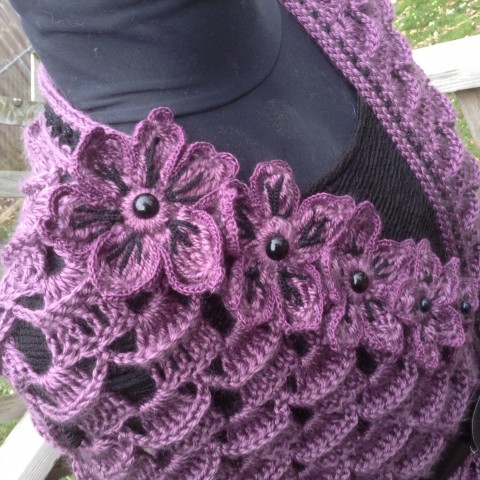 У меня тоже была недоделка,но тут мне девочка с форума написала сообщение вопрос по моей ракушке и я вернулась к своей заброшенной ракушке пожалела бедняжку безпризорницу Проблема была в нитках не хватило одного мотка,когда покупала на полках попался очень редкий цвет French lilac Француская сирень ,но изначально было мало мотков .Потом искала безуспешно ,пришлось заказывать и только недавно мне прислали по заказу с фабрики через магазин не достающий моток ,но все не доходили руки.Вот так я украсила цветочками горловинку в ассиметрии только с одной стороны ,отошла от строгой формы и слегка добавлаизюминку.Очень было приятно что на форуме есть еще одна мастерица Ольга которой понравилась моя ракушка и она сейчас вяжет по моим топикам свою модельку.Спасибо за внимание до новых встреч