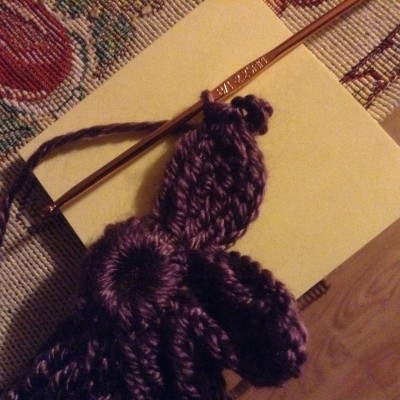 Затем 6вп 1стс 4накидами в одно устье,3ст с 4-моя накидками в одно устье,1 ст с 4-моя накидками в одно устье, на крючке собрались 6 петель -провязали их вместе и сделали пилот, затем делаю цепочку из 6вп и опускаю и прикрепляют в устье последнего столбика с 4-мя накидками.-лепесток закончен.Если хотите сделать поменьше лепесток сделайте цепочку поменьше к примеру 5 и столбики делайте с тремя накидками.мой айпад правит слово накид в накидки.