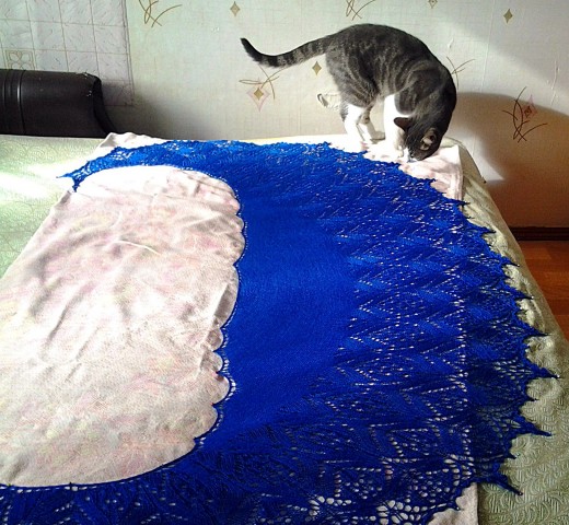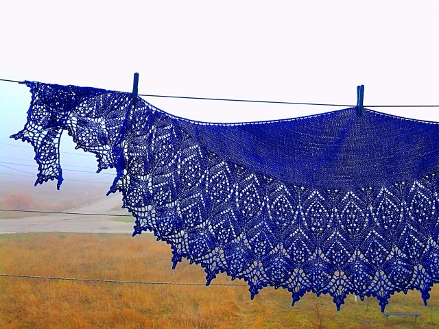 Поздравляю с тем, что осилили эту шаль, у нас не все дошли до финала, многие отказались в процессе, из-за большого размера, у меня самой было больше четырех метров по ажурной кайме. У некоторых девочек вообще «плащ-палатки» ))