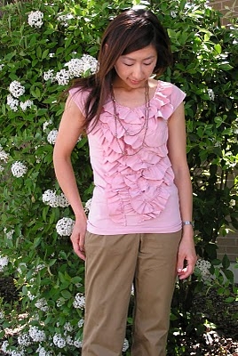 а потом дальше: прикалываем и пришиваем… работаем пока только с правой половиной футболки.