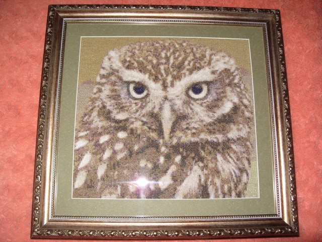 Вышивка совы, схему создала сама по фото из интернета.