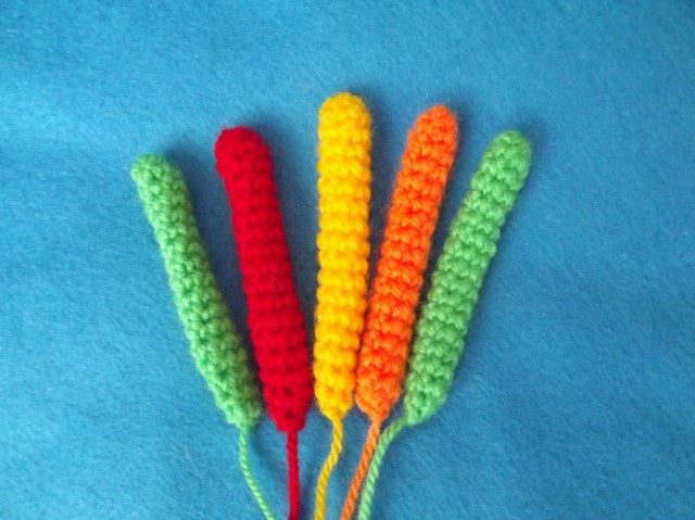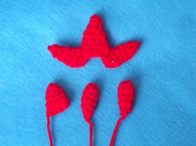 Для вязания бородки провязываем в КА 6 сбн. Со второго по четвертый ряд вяжем ст-ми без накида. Далее совершаем убавление петель до последней петли. Получаем одну деталь бородки. Таких деталей вяжем две.