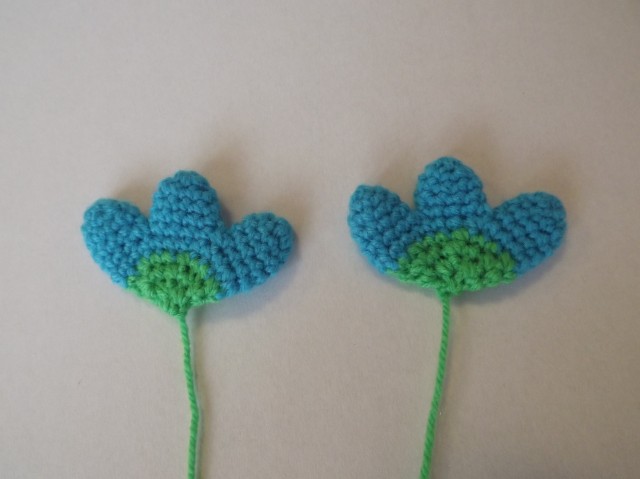 Делаем кольцо, ввязываем 3 ст. б/н. В каждом ряду сделать 2 раза по 3 прибавки и вязать прямо еще 2 ряда. Нить оборвать.