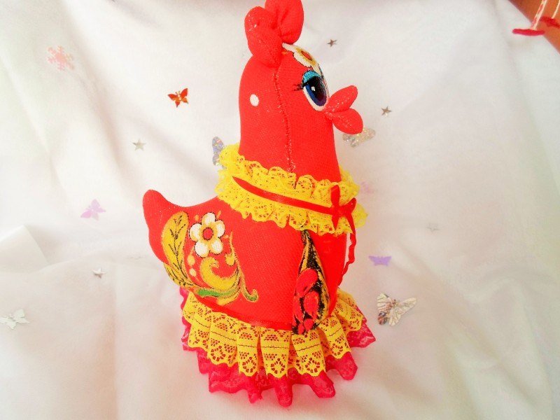 вот пошилась "сладкая парочка".очень мне понравилась выкройка.но у курочки просчиталась с нитками и при набивки т.красный "показал" себя некрасиво...