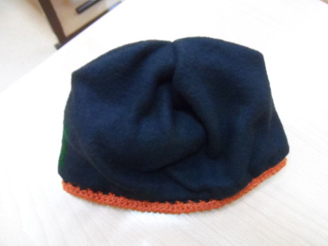 Берём нить рыжую и набираем 98 пт. Отмечаем, что это – лицевая сторона шапки, переворачивать полотно не будем.