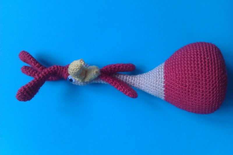 17р – убавить 3 раза. Набить, стянуть, нить отрезать.