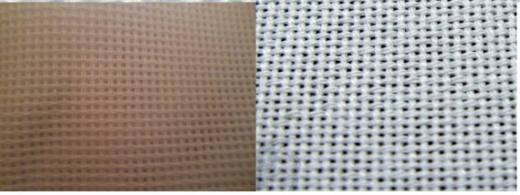 Смотрите вот ткань. Слева та что у Вас, справа та которая надо. Разница в переплетении нитей. Именно благодара переплетению нитей, при вышивке хардангера получается тот узор что нужно. Если вышивать один и тот же элемент на той канве что у Вас, хардангер на получится.