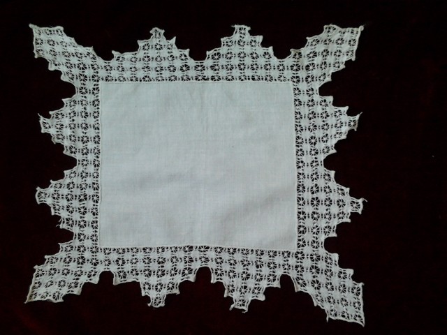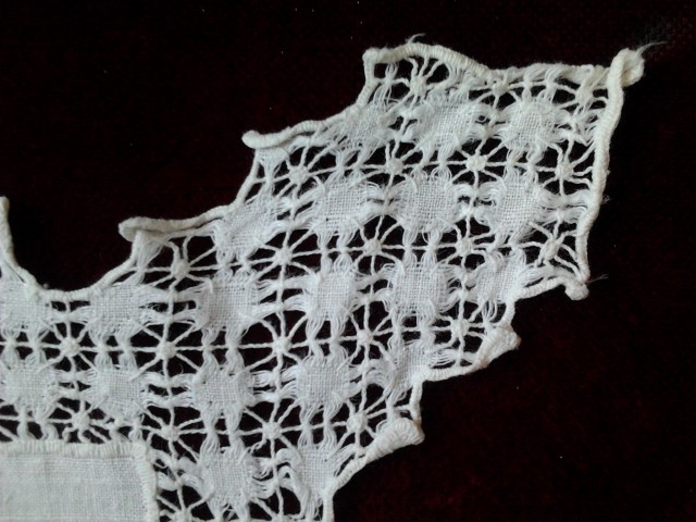 А это работы нашей бабушки. По- моему это строчевая вышивка. На подушке - коклюшечное кружево.