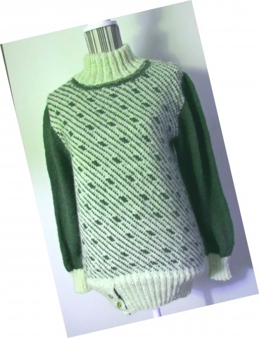 Уютный свитер, понравился жаккард и фасон. Такой длинный и со стойкой как раз и нужен на морозную погоду. Молодец!