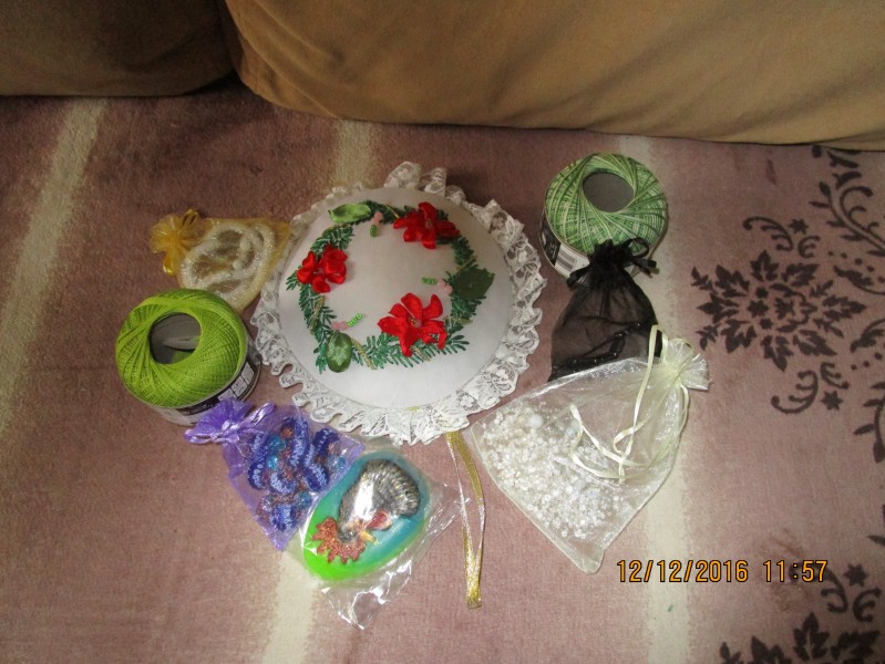 Да, совсем забыла, в посылочке еще крючок для вязания приехал. Он такой тоненький, № 0,50, что я его не сразу увидела и в фотографии он не попал.
