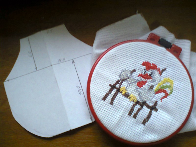 Вышивала петушка два вечера, еще один вечер ушел на пошив фартука. Схему фартука вычертила по размерам, которые подглядела тоже в Интернете.