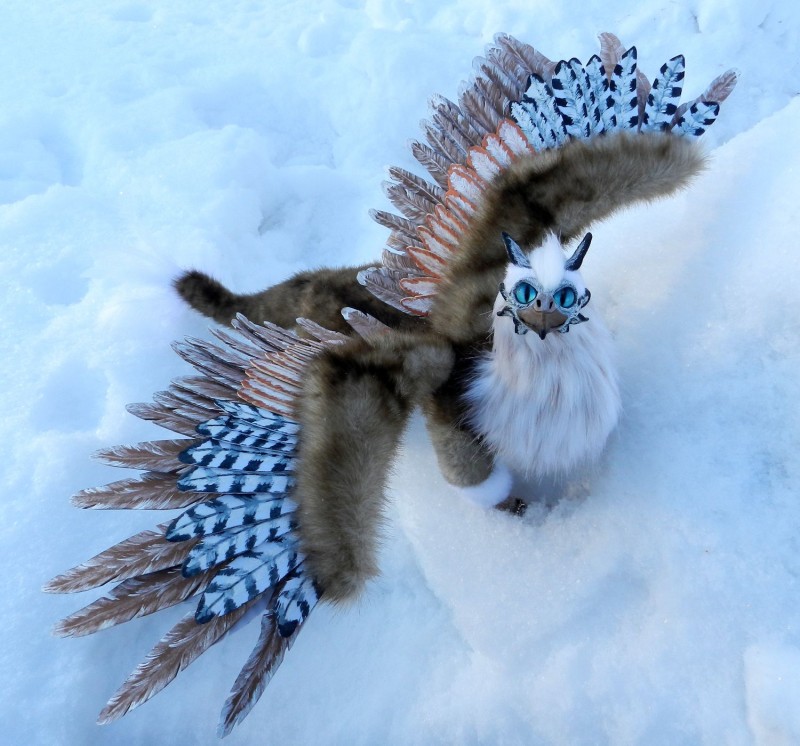 Грифон как в сказке получился! Мордочка выполнена настолько естественно, что смотрится как живой, глаза — теплом отдают( наверное вашим) А крылья из чего делали?