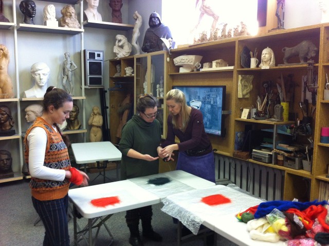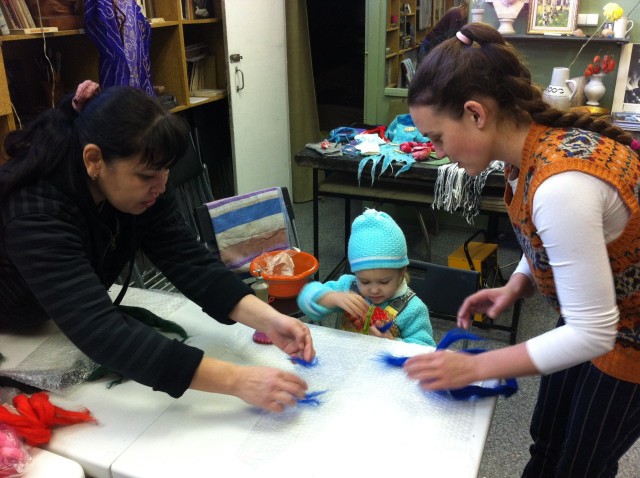 Девочки, здравствуйте. Отчитываюсь) Сразу два МК. Первые фото--МК проведён в мастерской скульптора. Там особенная атмосфера. Мне очень нравится. У меня было три ученицы и одна малыха, которую вы видите на фото. Валяли мы петухов.(мне не нравятся такие малые формы), но заказали и потом с людьми работать всегда приятно, несмотря на то, что валяешь)Там заодно и мои изделия лежат. что б можно было трогать))