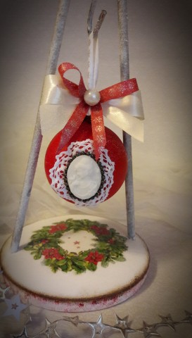 Валечка, крюк, конечно, великоват для такого элегантного шарика, но понимаю, что его не убрать и не заменить. Может стоило его как то обыграть, чтобы он выглядел более подходящим для композиции? Скажем, какими то мелкими бантиками и камушками-стразиками. А вообще, очень интересно получилось. Задумка правильная, креативная!