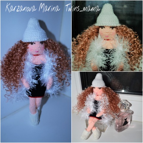 Моя первая кукла на каркасе. Выполнена из акрила. Рост 24см. Волосы, крепила каждую прядку, как если делать из ниток.