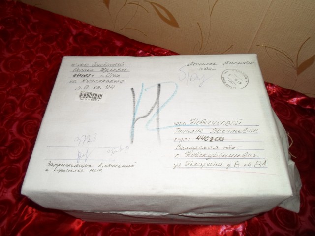 Вот посылочка еще не раскрытая, такая вся в белом одеянии.