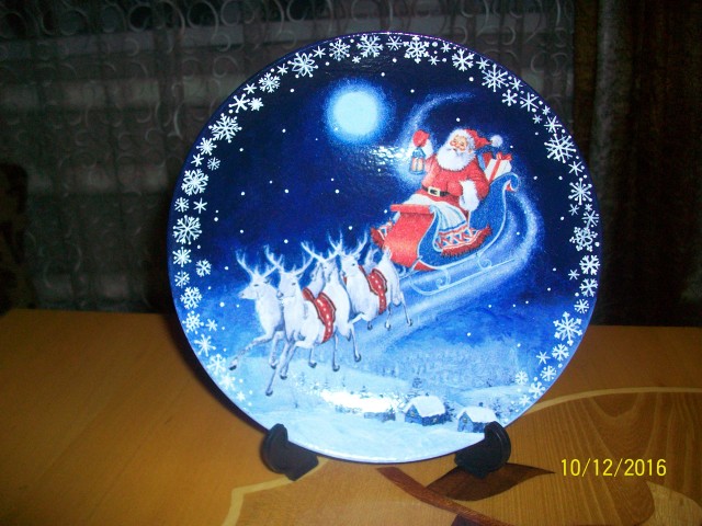 Обожаю декупажные вещи. Для меня это китайская грамота. а тут в подарок прислали такую красивущую тарелочку) да ещё с изображением моего любимого праздника Нового Года. Видели бы вы как у меня радовался этому подарку муж, который достаточно прохладно относится к моим увлечениям) всё, тарелка нашла своего хозяина)
